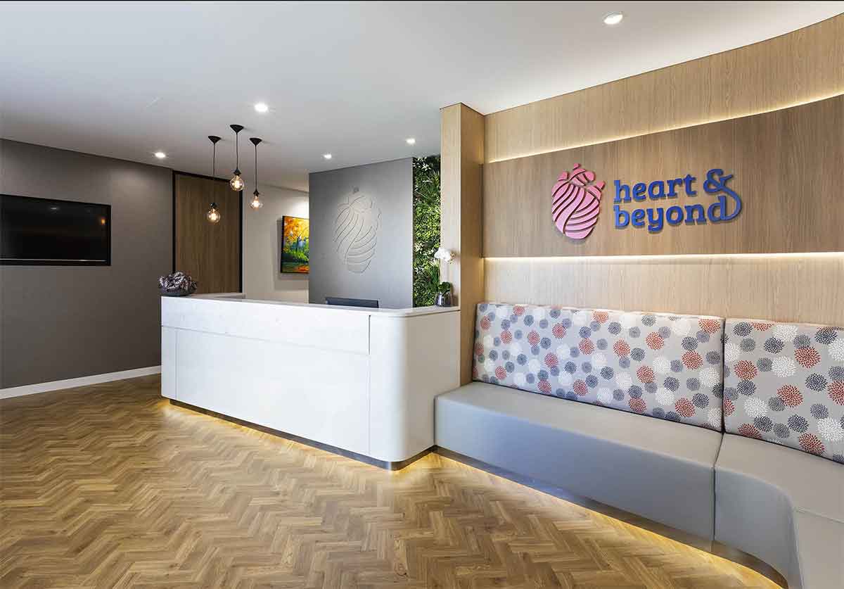 Heart and Beyond is a specialist cardiology centre run by Dr Viswanathan Venkatachalam, an interventional cardiologist who has a belief and mission to deliver care with positivity and happiness. In line with this philosophy. The suite, designed by Big City Design was constructed to be a warm and welcoming space that is the antithesis of the traditional stark and clinical design model of healthcare facilities.